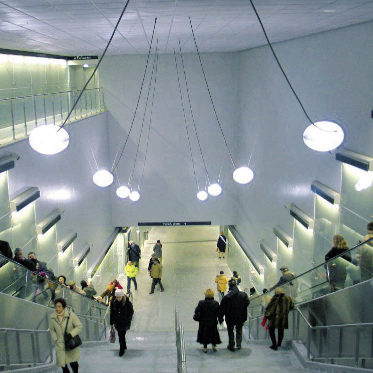 Gem Suspension Led, Gênes, Italie : Station de métro Dé Ferrari. Photo : archives Ansaldo Trasporti S.I. de Gênes